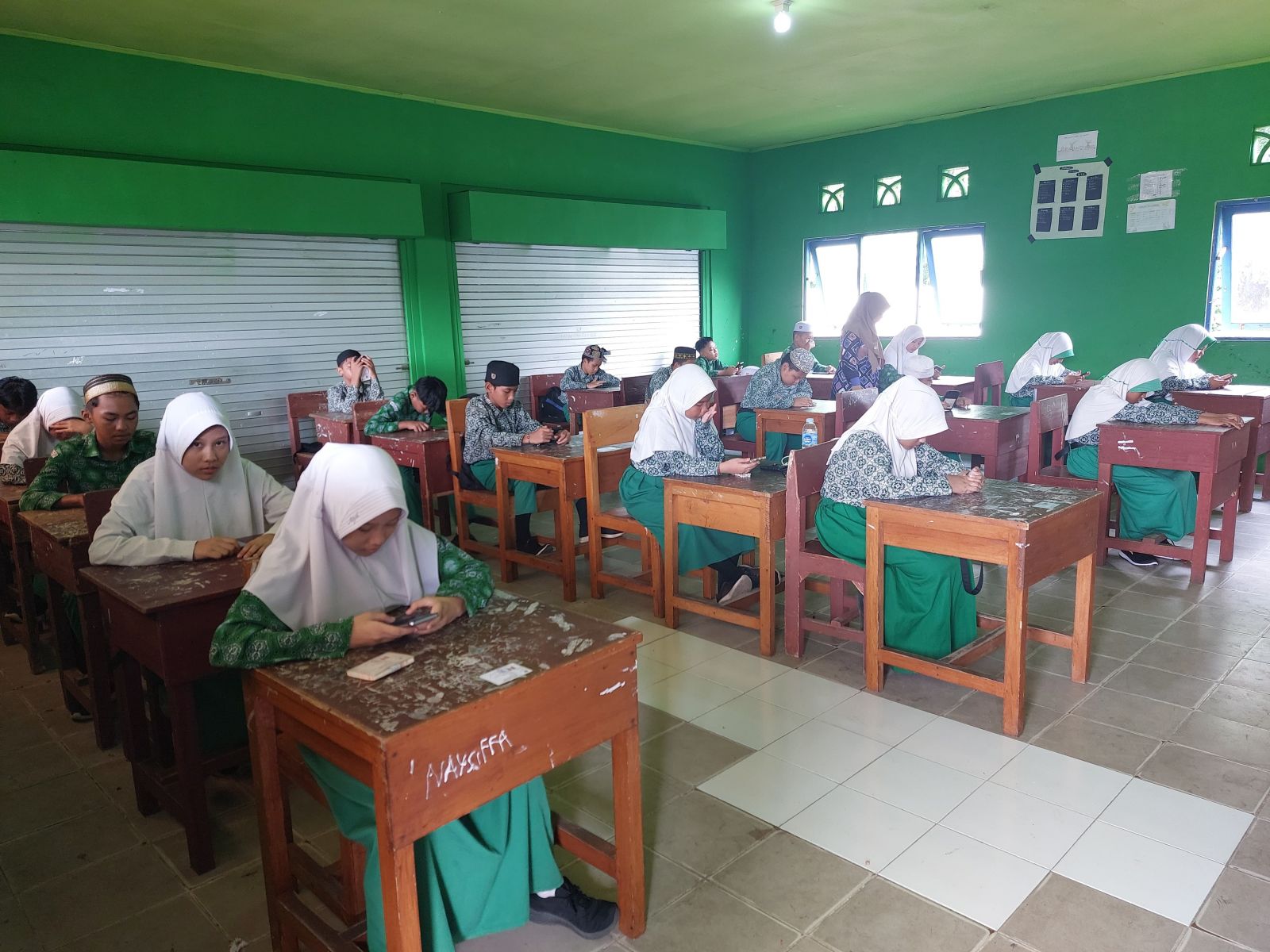 Peserta Asesmen kali ini menggunakan Hp Android masing-masing dengan paket data masing-masing siswa, hal ini sudah disosialisasikan madrasah kepada orang tua wali siswa untuk meyiapkan perangkat android yang support dengan aplikasi exambroser yang digunakan untuk asesmen.serta berisi paket data untuk menghindarai pemadaman listrik jika menggunakan wifi madrasah.